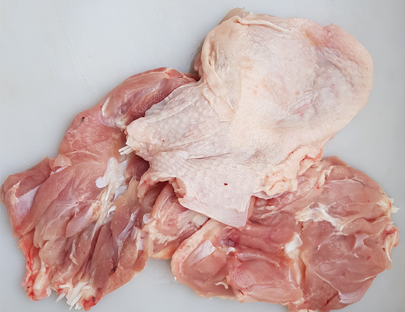 Mięso drobiowe uzyskane z ćwiartki kurczaka po wytrybowaniu. Produkt należy do kategorii produktów świeżych. Cwiartka z ...